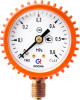 Газовый (сварочный) манометр серии ТМ-210 отечественного производства ЗАО «РОСМА» используется для измерения и контроля давления газа в замкнутой системе с максимальной рабочей температурой до 120°C. Его запрещается использовать в работе с агрессивными, вязкими и кристаллизующимися рабочими средами. Применяется в баллонных редукторах и регуляторах. Прибор имеет диаметр корпуса 50 мм, радиальное исполнение (штуцер снизу), класс точности 2,5 и степень защиты IP40. Корпус газового манометра от РОСМА имеет цветовую индикацию в зависимости от измеряемой среды: кислородный (О2) манометр – голубой корпус; ацетиленовый (С2Н2) манометр – серый корпус; пропановый (С3Н8) манометр – красный корпус; манометр для других газов – черный корпус. Манометр рекомендуется заказывать с защитным кожухом как на фото (это доп. опция).